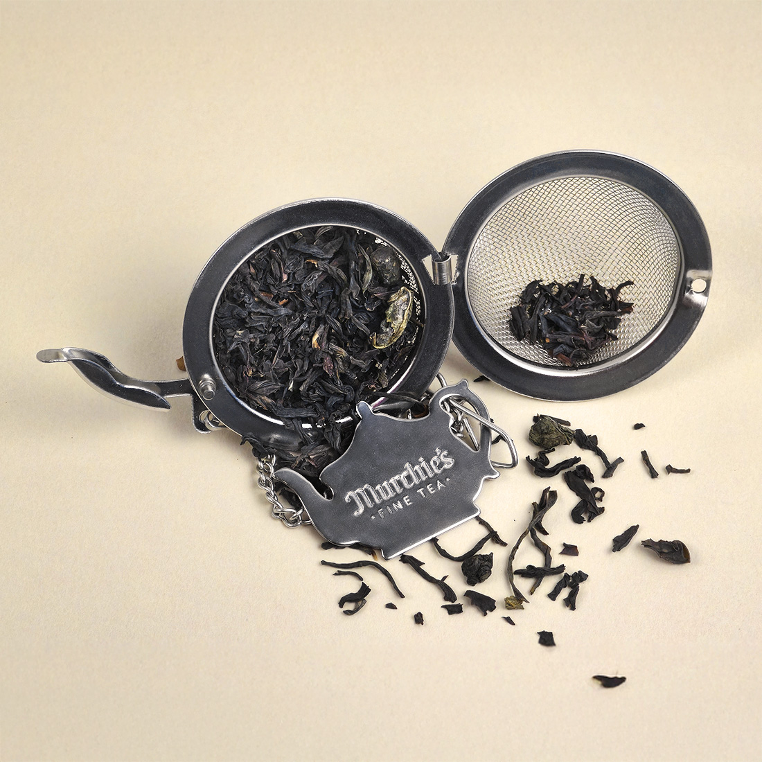 - Stainless Steel mesh with a Murchie's Tea Pot charm